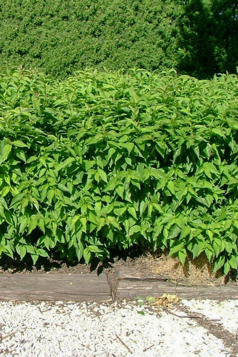 Huron Gray Dogwood is primarily valued in the landscape or garden for its ornamental globe-shaped form. It is smothered in stunning clusters of creamy white flowers at the ends of the branches from late spring to early summer. It has grayish green deciduous foliage. The pointy leaves turn an outstanding burgundy in the fall.