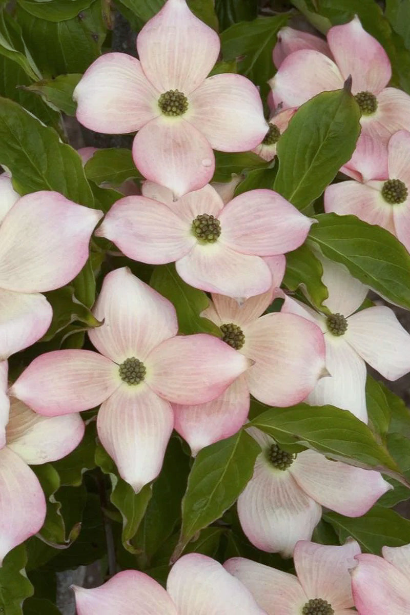 Profuse, large, overlapping, blush pink, flower-like bracts cover this small but vigorous tree in early spring. The fully branched habit provides layers of lush green foliage from bottom to top. A magnificent landscape specimen for small gardens or woodland settings. A sterile cultivar that produces no fruit. Deciduous.