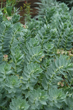 Donkey-Tail Spurge's attractive round leaves remain steel blue in color throughout the year on a plant with a spreading habit of growth. It has masses of beautiful cymes of chartreuse flowers with buttery yellow bracts at the ends of the stems from early to late spring, which are most effective when planted in groupings.