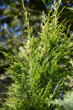 Pinpoint® Gold Lawson Falsecypress is a dwarf conifer which is primarily valued in the landscape for its rigidly columnar form. It has attractive gold-variegated bluish-green foliage with hints of yellow which emerges gold in spring. The scale-like sprays of foliage are highly ornamental and remain bluish-green throughout the winter. The shaggy antique red bark adds an interesting dimension to the landscape.