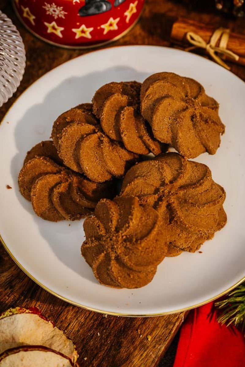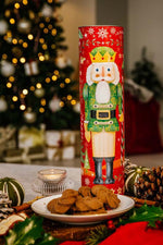 Rich chocolate whirl biscuits packed in a festive red nutcracker design tube, making it the perfect stocking filler for Christmas.