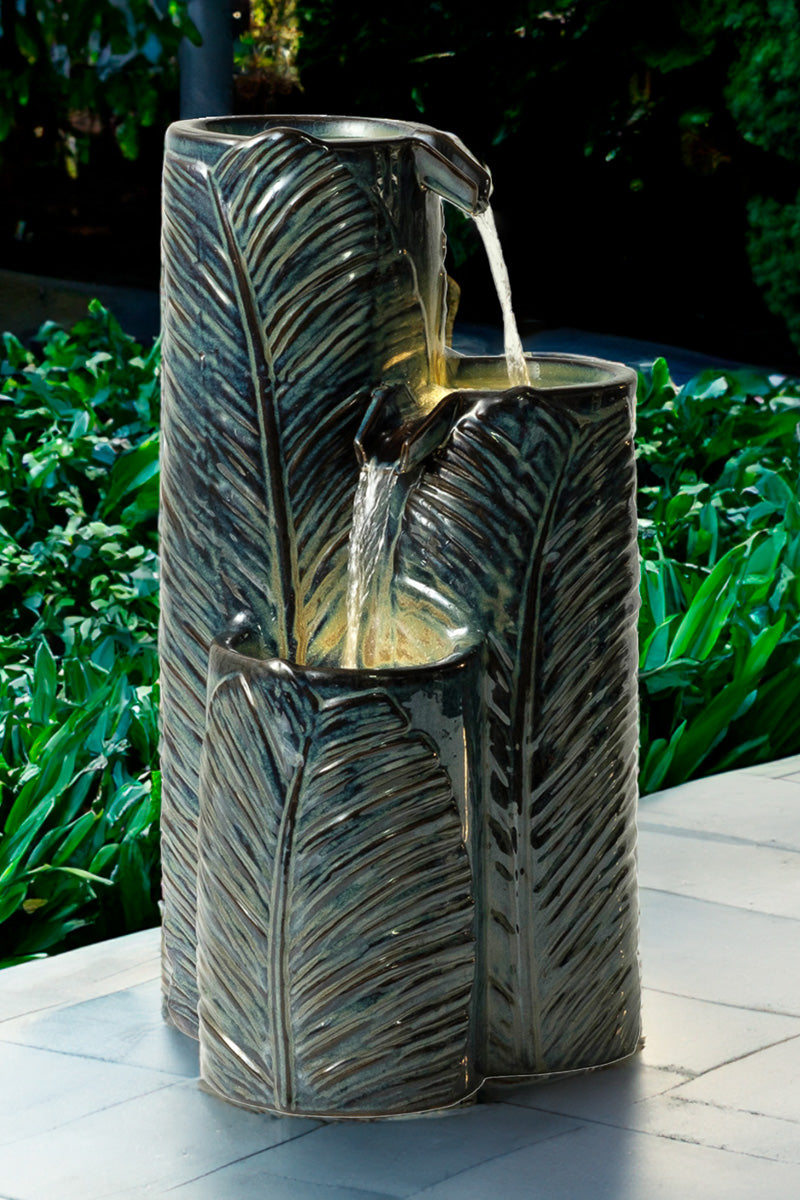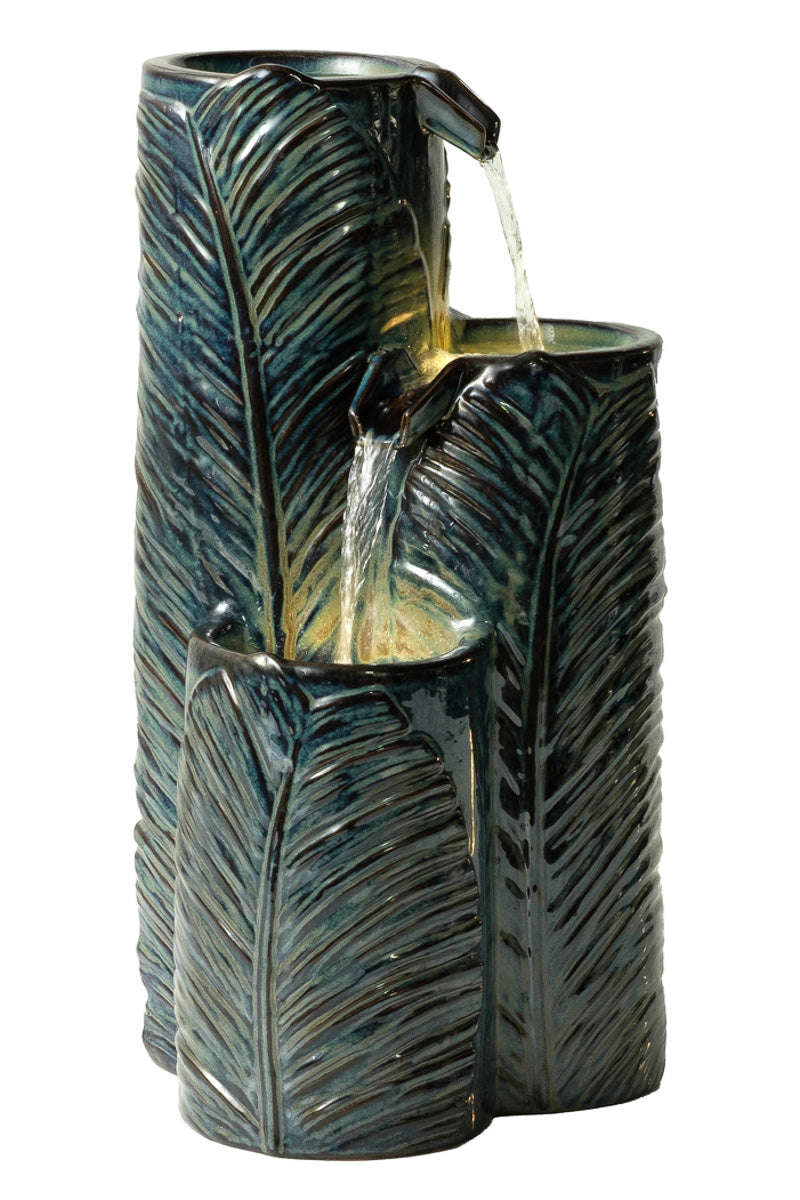 Alfresco Home Waterfall Leaf Ceramic Fountain 25.25"