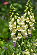 Arctic Fox™ Lemon Cream Foxglove features bold spikes of creamy white tubular flowers with lemon yellow overtones rising above the foliage from late spring to late summer. The flowers are excellent for cutting. Its pointy leaves remain green in color throughout the season.