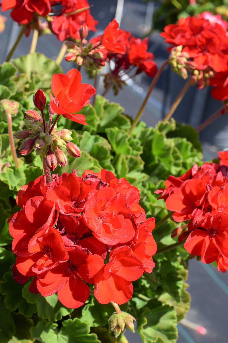 Americana® Dark Red Geranium features bold balls of lightly-scented dark red flowers at the ends of the stems from late spring to early fall. The flowers are excellent for cutting. Its tomentose round palmate leaves remain green in color with prominent brown stripes throughout the year.