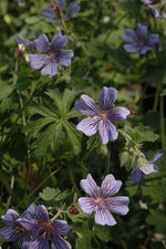 Brookside Cranesbill has masses of beautiful powder blue flowers with white eyes at the ends of the stems from late spring to mid summer, which are most effective when planted in groupings. Its deeply cut lobed palmate leaves are green in color. As an added bonus, the foliage turns a gorgeous scarlet in the fall.