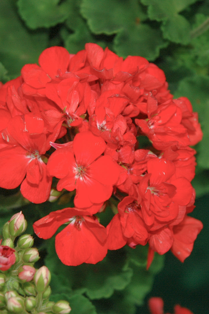 Patriot Watermelon Geranium features bold balls of lightly-scented coral-pink flowers at the ends of the stems from late spring to early fall. The flowers are excellent for cutting. Its tomentose round palmate leaves remain green in color with prominent brown stripes throughout the year.