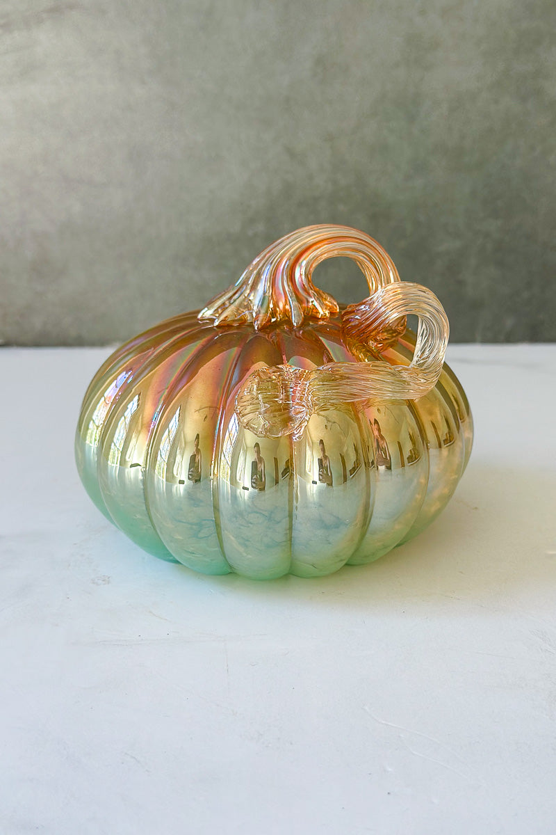 Fall Glass Pumpkin With Curly Stem 5"x4.5" Gold Luster