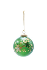 4" Round Hand-Painted Glass Ball Ornament w/ Botanicals, Green & Gold Finish