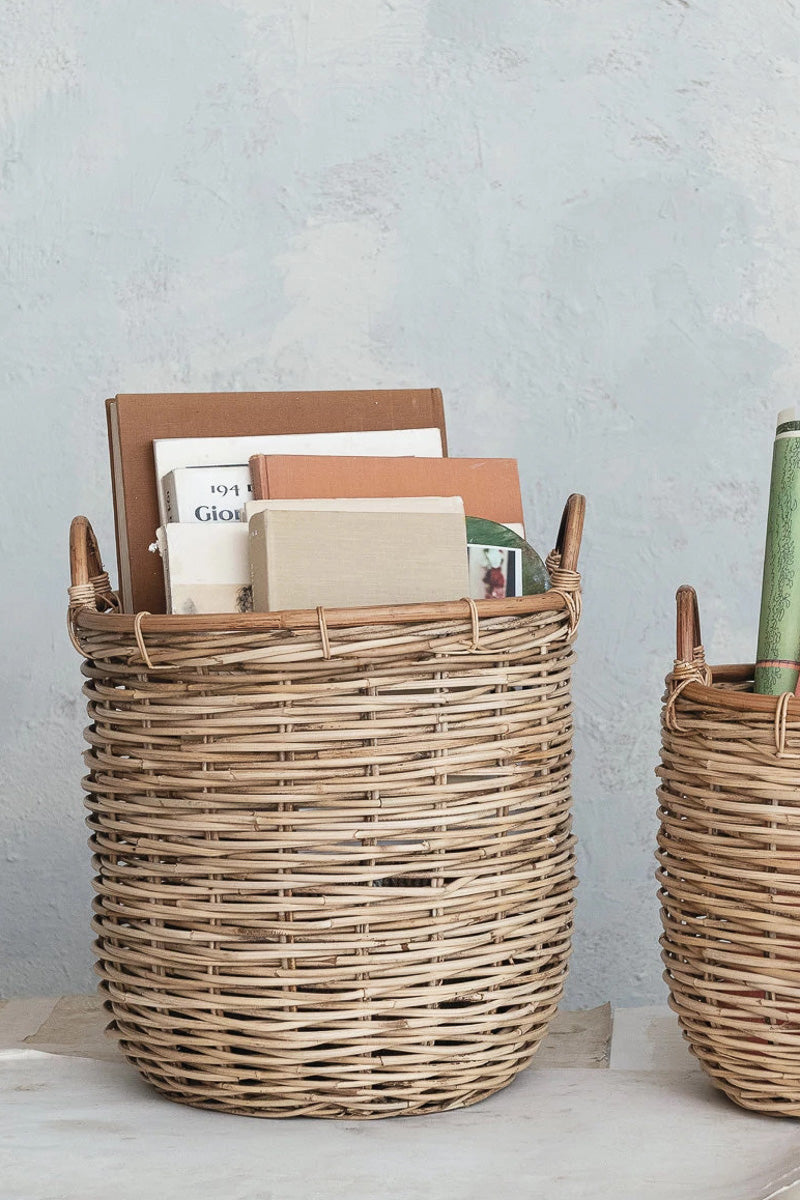 Creative Co-Op Hand-Woven Rattan Basket with Handles Natural Large