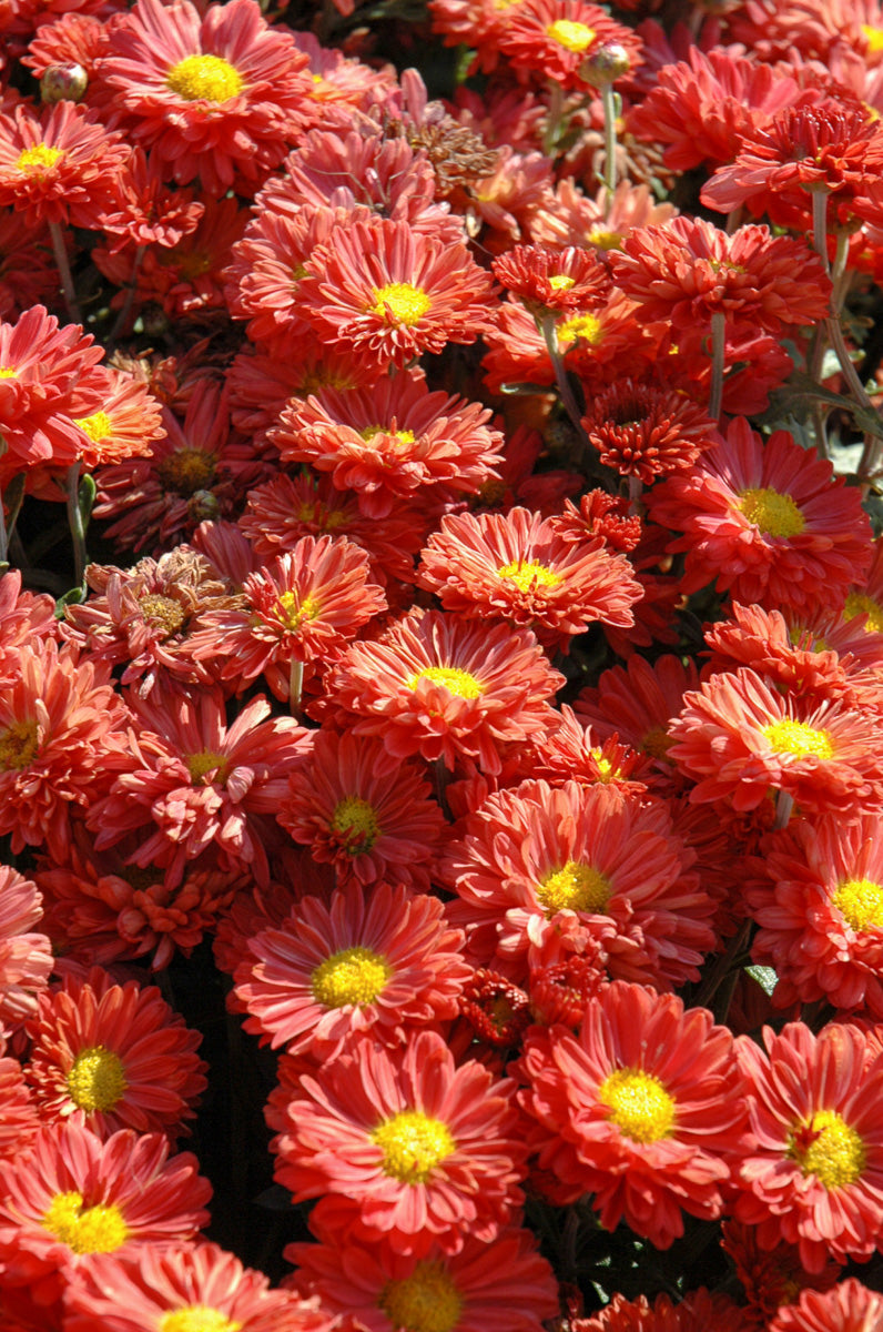 Dark Bronze Daisy Chrysanthemum is covered in stunning coppery-bronze daisy flowers with yellow eyes at the ends of the stems from early to late fall. The flowers are excellent for cutting. Its fragrant ferny leaves remain dark green in color throughout the season.