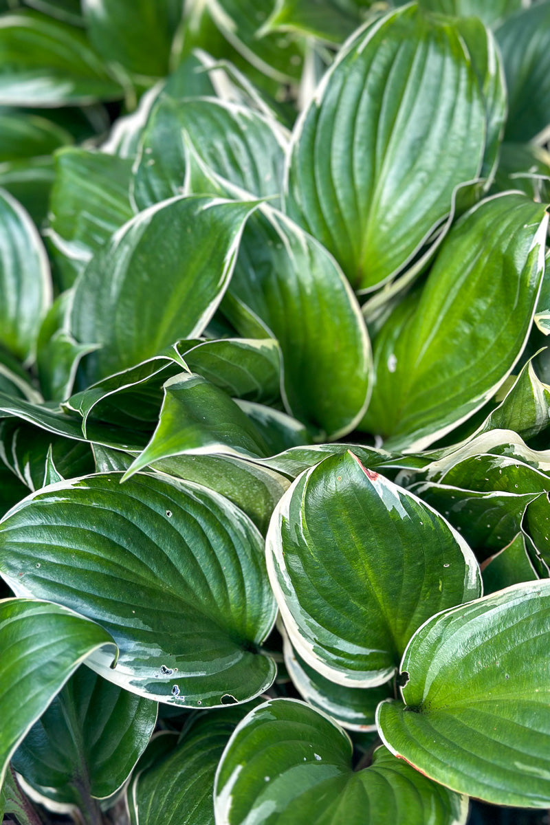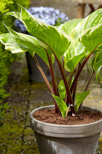 A surprising splash of bold colour awaits beneath this upright hosta variety. As if the bright green foliage edged in icy white wasn't enough to tempt you, Sorbet displays contrasting red petioles that really cause a stir. A truly unique variety, it's ideal for brightening shady borders or container gardens.