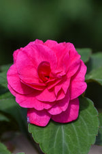 Hot Pink Double Impatiens features bold hot pink round flowers at the ends of the stems from mid spring to early fall. Its pointy leaves remain green in color throughout the season.