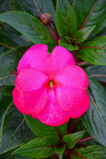 Super Sonic® Pink New Guinea Impatiens features bold pink round flowers at the ends of the stems from mid spring to early fall. Its pointy leaves remain dark green in color throughout the season.