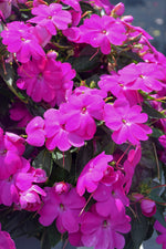 SunPatiens® Lilac New Guinea Impatiens features bold lilac purple round flowers at the ends of the stems from mid spring to early fall. Its pointy leaves remain dark green in color throughout the season.