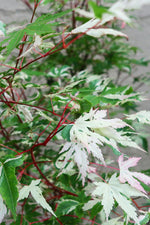 The stunning Acer palmatum ‘Oridono-nishiki’ features lively, dense foliage that appears in a blend of light green, creamy white, and soft pink hues. Its finely divided, delicate leaves captivate throughout the growing season, shifting to vibrant shades of golden-yellow, orange, and red in the fall. As winter arrives, the foliage naturally fades away, allowing the tree to enter its dormant phase.