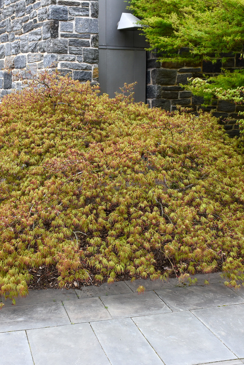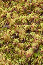 Spring Delight Japanese Maple is primarily valued in the landscape or garden for its highly ornamental weeping form. It has attractive light green foliage edged in red. The deeply cut lobed palmate leaves are highly ornamental and turn an outstanding orange in the fall.
