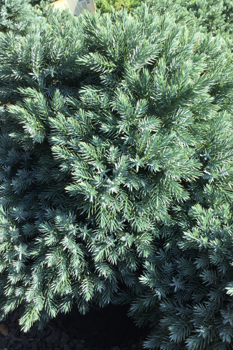 Blue Star is a low growing, mounded juniper with bright steely blue foliage that contrasts beautifully with the typical greens of other garden plants as well as yellows and purples. The needles are radially arranged around the stems giving the appearance of stars. Great in the rock garden, as a low border plant or in a mass planting for the color effect.