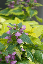 Anne Greenaway Spotted Dead Nettle has masses of beautiful spikes of lilac purple flowers rising above the foliage from mid spring to early fall, which are most effective when planted in groupings. Its attractive oval leaves emerge lemon yellow in spring, turning green in color with distinctive chartreuse edges and tinges of silver throughout the season.