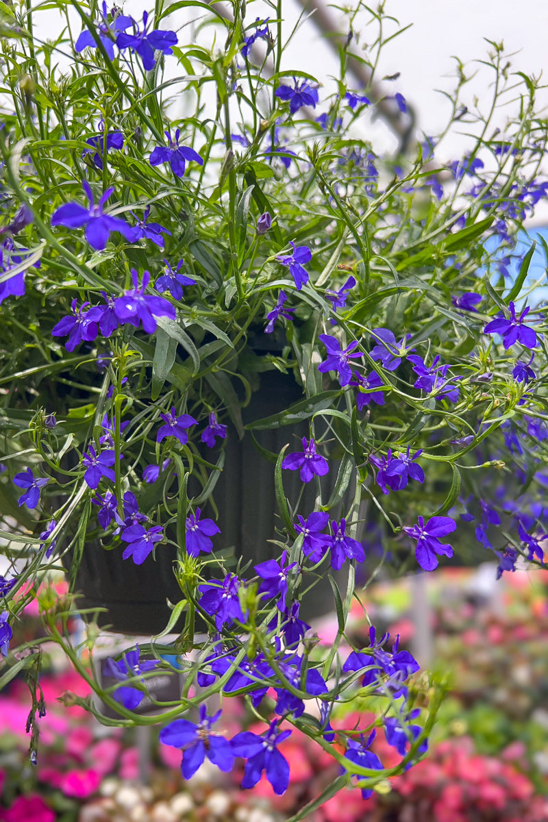 Lobelia has a medium-compact nature and has a trailing growth habit. It has a spread of 18-22 inches, requiring a space of 12-15 inches to properly grow, and has an optimal height of 6-10 inches.