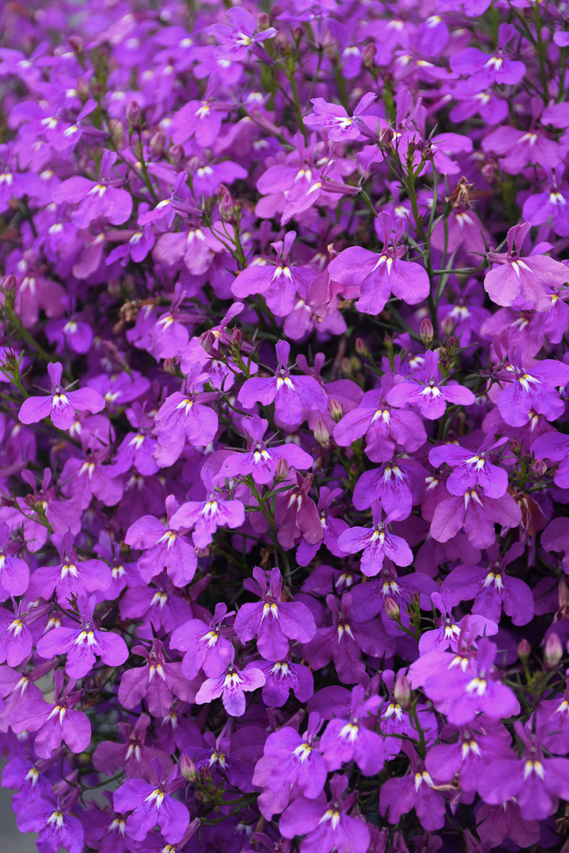 Laguna® Ultraviolet™ Lobelia features dainty purple flowers with violet overtones and white eyes at the ends of the stems from mid spring to mid fall. Its tiny narrow leaves remain green in color throughout the season.