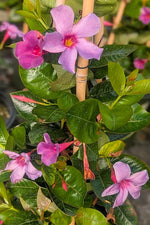 Superior branching and flower power! Early to bloom, featuring coral-pink buds that open to soft pink blooms, aging to lavender. The compact form can be left unstaked, allowing it to flow over the edge of containers and hanging baskets, or train it onto a small trellis for more height. Evergreen in mild climates; excellent annual color where not hardy.