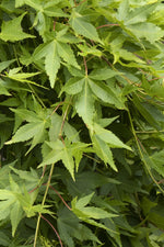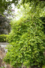 This exceptional variety from Japan is unlike any other. With green palmate leaves that are generally characteristic of upright varieties, 'Ryusen' is a weeping form with rapid growth that shoots straight up and cascades down. Excellent for narrow spaces. Bright yellow and orange-red fall color adds to its beauty. Deciduous.