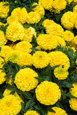 Taishan Yellow Marigold features bold lemon yellow ball-shaped flowers at the ends of the stems from early summer to mid fall. The flowers are excellent for cutting. Its fragrant ferny leaves remain dark green in color throughout the season.