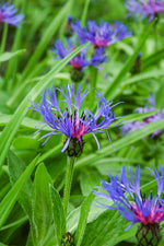 Mountain Bluet features unusual blue lacecap flowers with rose anthers at the ends of the stems from late spring to late summer. The flowers are excellent for cutting. Its narrow leaves remain grayish green in color throughout the season.