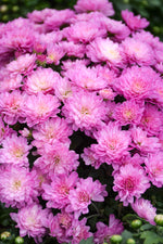 Gigi™ Dark Pink Chrysanthemum is covered in stunning double pink daisy flowers at the ends of the stems from late summer to late fall. The flowers are excellent for cutting. Its fragrant ferny leaves remain dark green in color throughout the season.