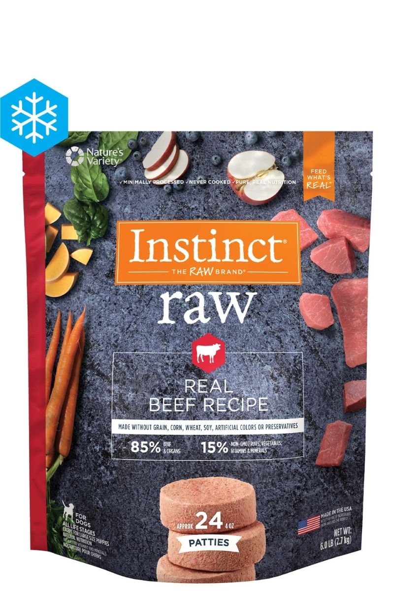 Unit price perReal food is raw. Each Instinct ® Raw recipe is protein packed with 85% meat and organs and 15% non-GMO fruits, vegetables; vitamins & minerals. We use whole-food ingredients like real beef and never include grain, corn, wheat, soy, artificial colors or preservatives. We believe in the power of raw nutrition because we know the good it can do. Unlock your dog's potential to thrive with Instinct ® Raw.​