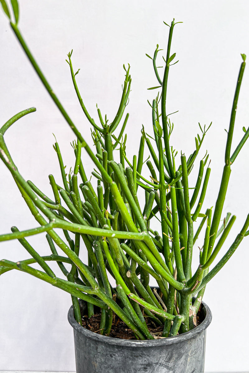 Unit price perThe pencil cactus is an interesting shrub with succulent foliage Mature plants feature thick brown branches with clusters of smaller green branches at their ends, which are cylindrical in shape and around the thickness of a pencil. On the branches are oval leaves that grow up to an inch long. Also, in the late spring and early summer, small flowers appear at the ends of the green branches. This plant lacks the sharp spines that are commonly found on many cacti.