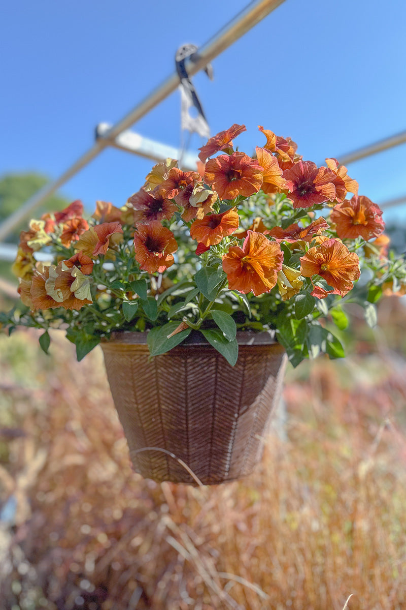 SuperCal® Mix Petchoa is blanketed in stunning dark red trumpet-shaped flowers with gold overtones at the ends of the stems from mid spring to late summer. Its pointy leaves remain green in color throughout the season.