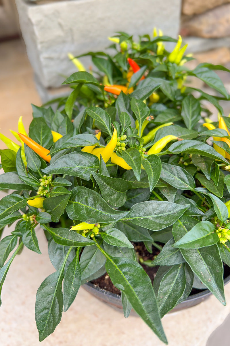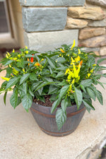 Peppers grow in bright shades of yellow and red atop this compact fall annual. Bushy, glossy green foliage and colorful fruit that stand in upright clusters at the end of the stems combine to create an outstanding ornamental plant. Adds a great pop of color and unique texture to mixed containers and fall annual beds. Use them as bedding plants in the garden or plant them in pots so you can enjoy them on sunny decks and patios.