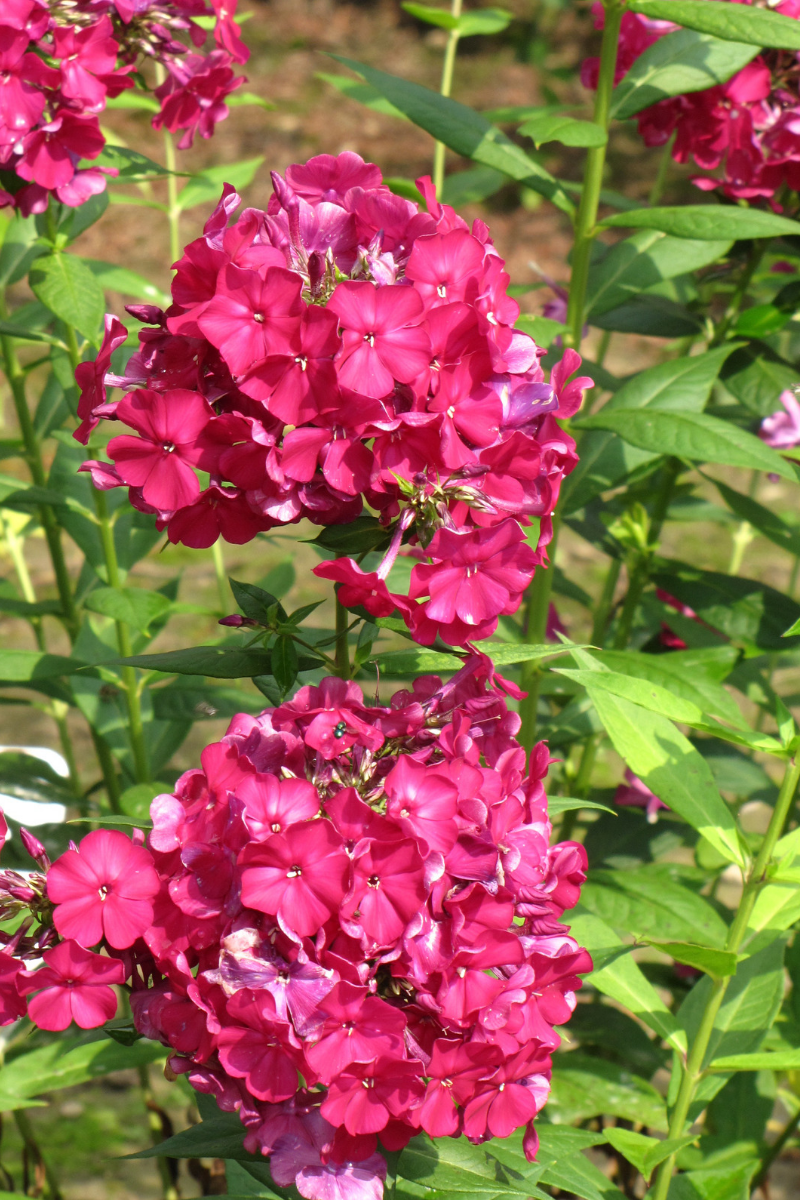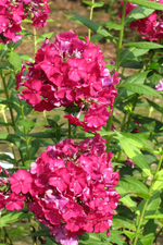 Vividly colored flowers bloom for weeks in the summer heat making Phlox a must-have for the mid to late summer garden. Domed clusters of fragrant, deep reddish purple flowers bloom July through August on upright stems of lush, dark green, mildew-resistant leaves. Phlox mixes well with other plants and, regardless of color, is attractive to hummingbirds. To further minimize the chance of powdery mildew, avoid overhead watering and overcrowding.