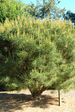 A compact variation of this popular specimen plant, with densely upright spreading branches, resembles an umbrella. It also sports an interesting orange-brown bark. The needles remain emerald green throughout the winter. It's rounded form blends into the landscape nicely. This relatively low maintenance shrub will even thrive in harsh city environments.