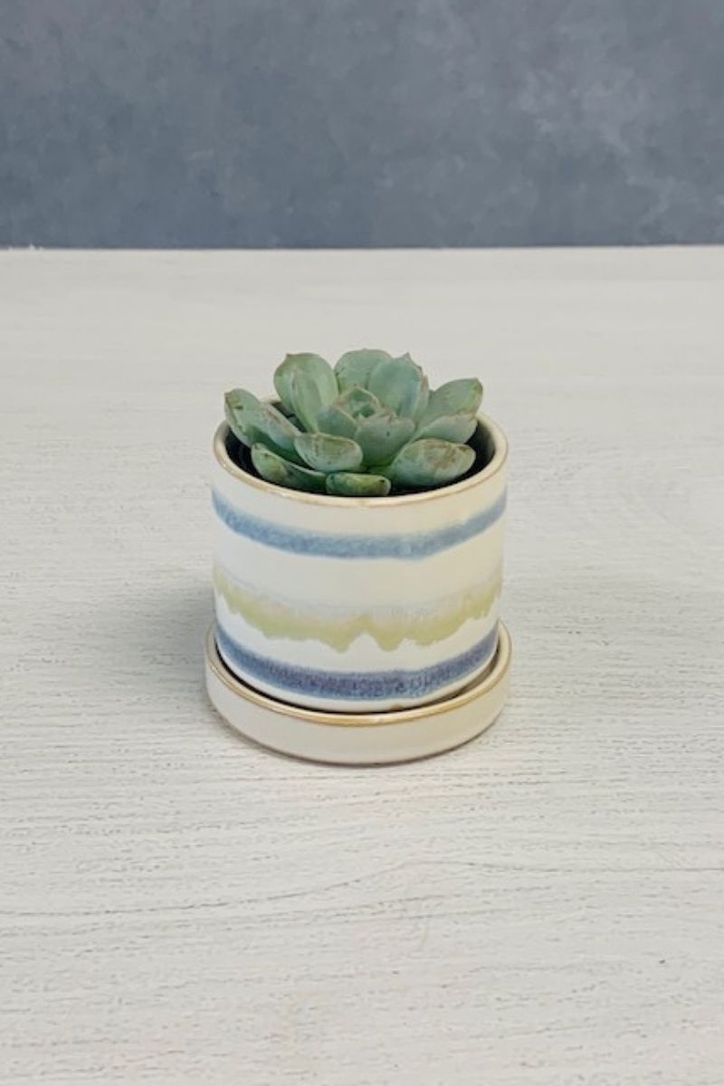 Chive Pot & Saucer Minute 2 With Layers 3" Blue Green