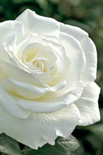An outstanding rose with an intense citrus and rose fragrance and elegant pure white blooms on a tall, bushy plant; excellent for cutting; foliage creates dark green contrast to the luminous blooms