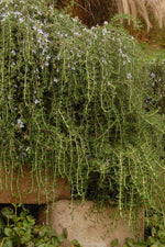 A beautiful carpet of deep blue flowers backed by green, needle-like foliage that forms an attractive spreading groundcover. This waterwise evergreen shrub is outstanding for cascading from retaining walls or planters and is very useful in erosion control on banks and slopes. The aromatic leaves are often used as a flavorful culinary seasoning.