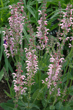 Eveline Sage has masses of beautiful spikes of shell pink flowers with lavender overtones rising above the foliage from late spring to early summer, which are most effective when planted in groupings. The flowers are excellent for cutting. Its attractive fragrant narrow leaves remain grayish green in color throughout the season.