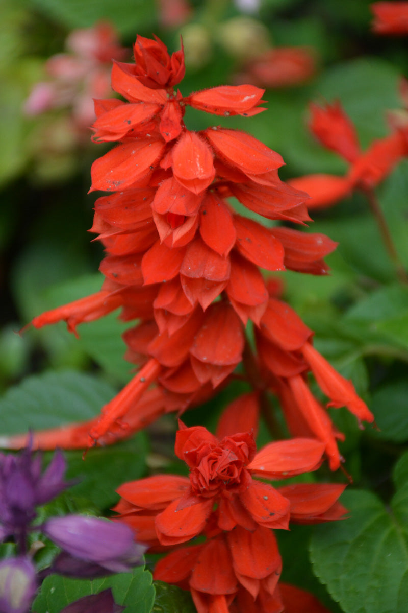 Vista™ Red Sage has masses of beautiful spikes of scarlet tubular flowers rising above the foliage from late spring to early fall, which are most effective when planted in groupings. The flowers are excellent for cutting. Its attractive serrated heart-shaped leaves remain dark green in color throughout the season.