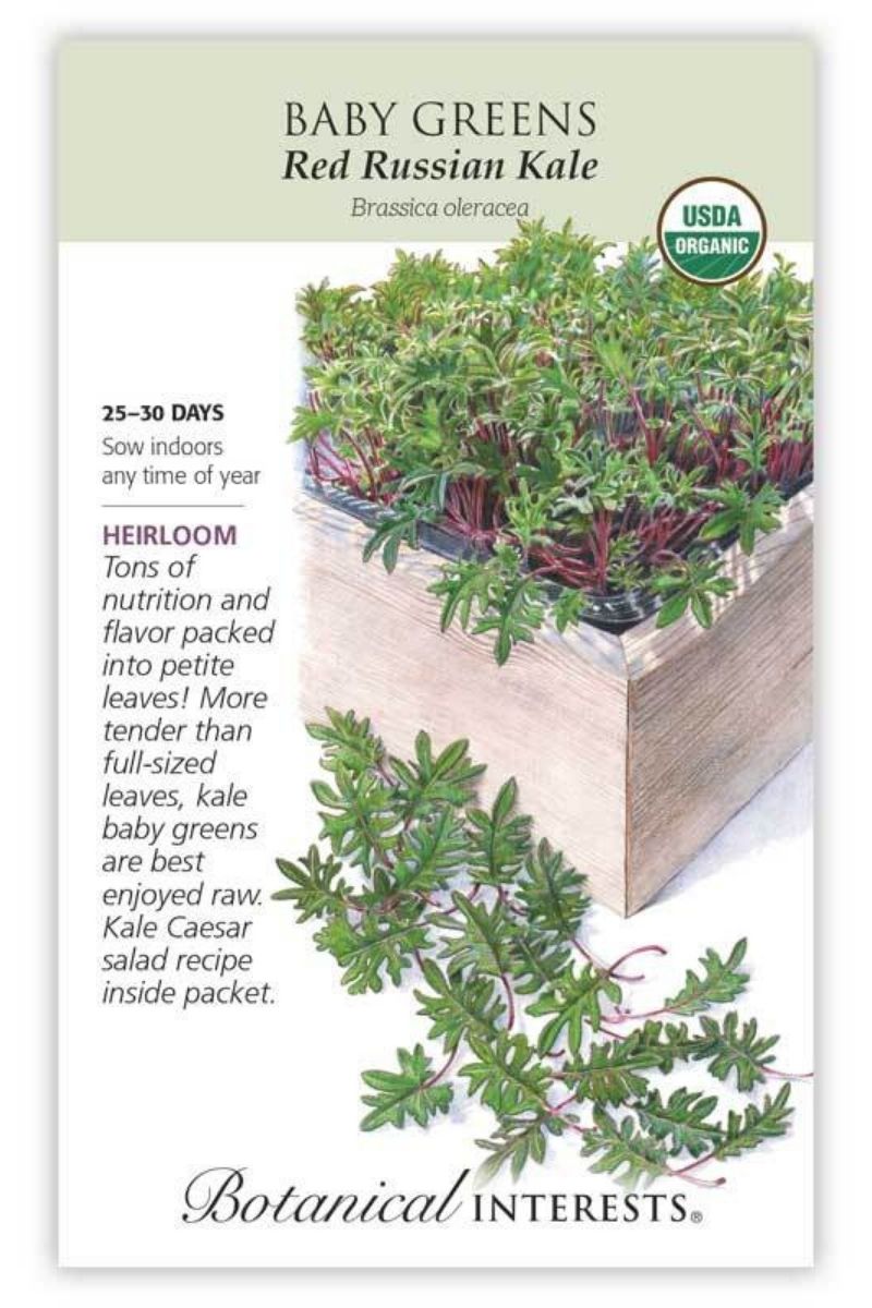 Unit price perHow do you make a nutritional powerhouse even more nutritious? Grow Red Russian Kale baby greens as it is loaded with vitamins A and C with big boosts of calcium, protein, iron, and fiber. These organic seeds can be grown indoors at any time of year and are a nutrient-packed way to get your "green fix" in winter. Move containers as needed for best light exposure and temperature. Harvest when 2"–4" tall and enjoy!