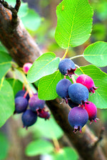 Saskatoon Serviceberry is a medium-sized tree with gorgeous white flowers and sweet, purple-black fruits. The Northline cultivar was selected in Beaverlodge, Alberta for the superior size and flavor of its berries.