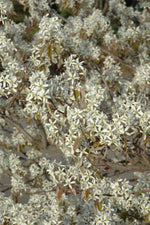 Shadblow Serviceberry is smothered in stunning clusters of white flowers rising above the foliage in early spring before the leaves. It has green deciduous foliage. The oval leaves turn an outstanding orange in the fall. It produces black berries in late spring.