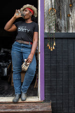 The working woman’s revolution will be messy– and we are here for it. We see you doing the dirty work needed to build a better world. Sawdust or soil, sand or cement, no matter how hard the job, this is our call to arms–it has short sleeves after all. So put on this badass shirt, dig beneath the surface, and GET DIRTY.