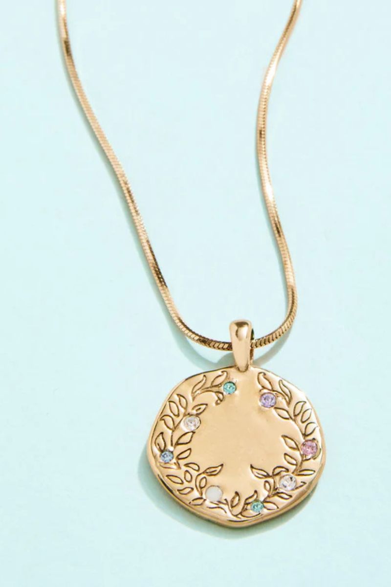 Unit price perThis talisman will bring you feelings of hope and peace. A floral wreath with crystals is etched in to symbolize optimism for what is to come, for growth, and for a future that blooms. You will never have to take off this collectible reversible charm made with tarnish-free, water-resistant 14kt shiny gold plating over stainless steel, designed to shine through everyday wear, exercise, showers, and a summer at the beach.