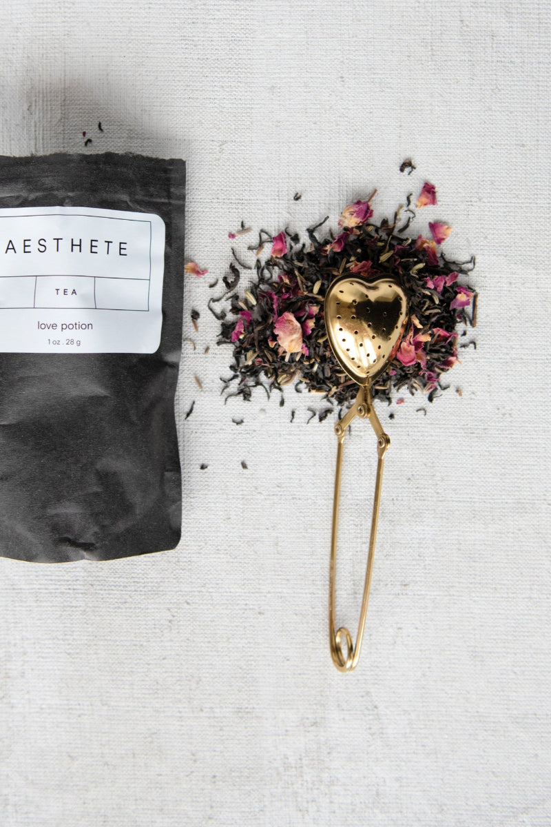 Creative Co-Op Stainless Steel Heart Shaped Loose Tea Strainer Gold Finish 6"
