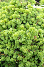 Dense nugget of evergreen foliage is a perfect accent in rock gardens, patio or foundation plantings. A hardy dwarf Norway Spruce with short, dark green needles grows slowly into a cushion-shaped mound. Sturdy branches hold up well to snow loads and isn't bothered by road salt. Adaptable to many different conditions including cold, heat and drought once established.