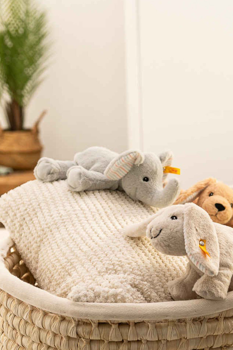 Unit price perThe Steiff "Little Floppies" collection of loosely constructed and lightly stuffed animals has been a favorite for nearly 15 years. Now we’re updating this beloved series with new designs featuring our best-selling playtime pets. Our beautiful little elephant called "Trampili" is handmade from a luxuriously soft fabric. He has an up-turned trunk (a sign of good luck!), stitched nose and mouth, and shiny black eyes. His small size makes him the perfect take-along pal who’s ready for adventure at a moment’s notice. For fun-on-the-run, there’s no better choice than our Steiff "Little Floppies."