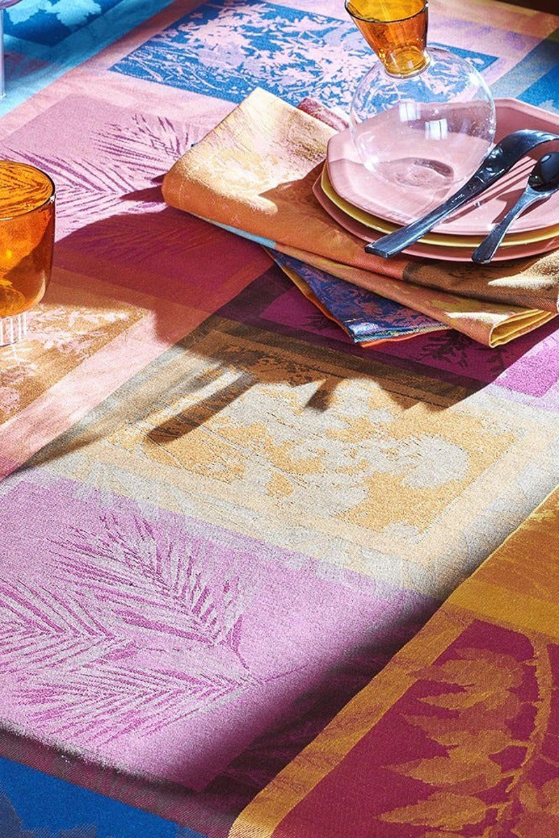Garnier-Thiebaut Mille Vegetaux Coated Tablecloth 69"x69" Sunset