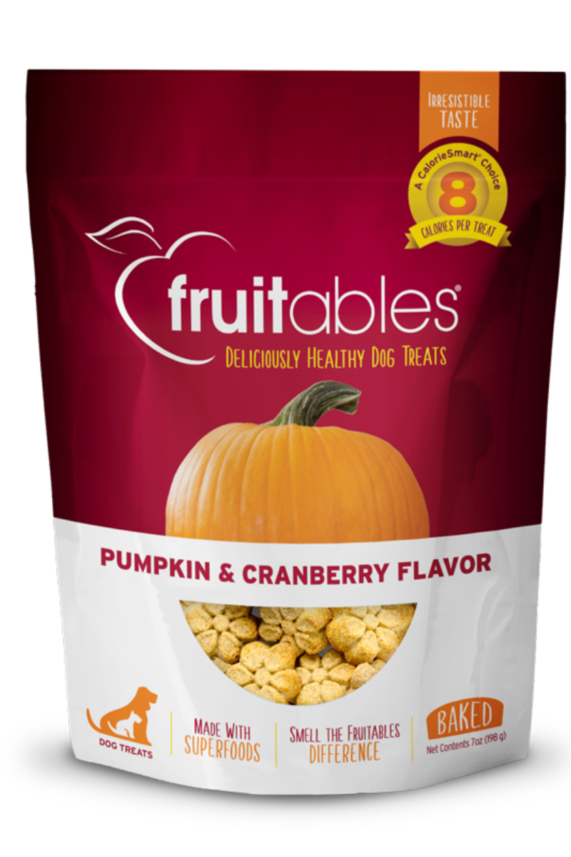 Homemade goodness! These tantalizing treats smell like muffins right out of the oven, loaded with pumpkin and cranberry and freshly baked just for your dog. Open a bag today and smell the Fruitables ® difference!; Made with Superfoods!